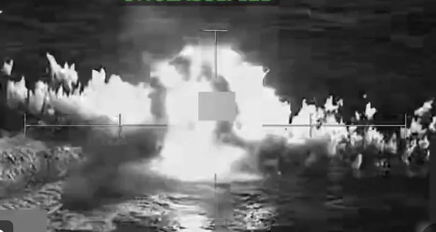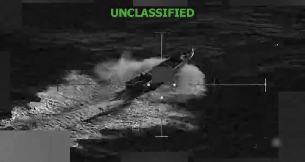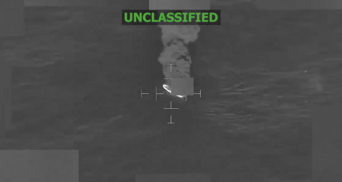 Las Fuerzas Armadas estadounidenses acompañaron la publicación del ataque con un video donde se observa a un buque en movimiento que resulta impactado.