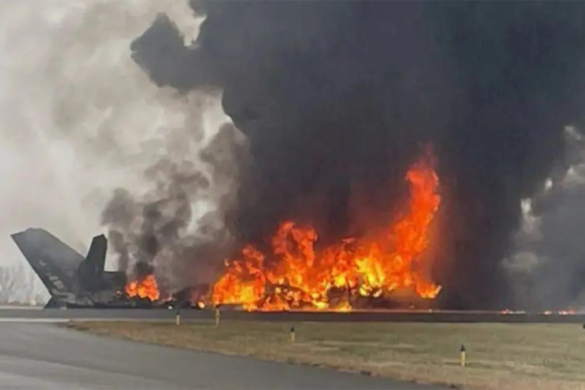 Imágenes difundidas desde el aeropuerto muestran a la aeronave envuelta en una gran bola de fuego tras el impacto.