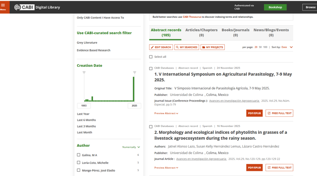 La revista Avances en Investigación Agropecuaria, de la Facultad de Ciencias Biológicas y Agropecuarias (FCBA), editada por la Universidad de Colima (UdeC), ingresó a la biblioteca digital de CABI (Commonwealth Agricultural Bureaux International), una organización intergubernamental con sede en Reino Unido, dedica a la investigación y desarrollo de investigaciones científicas, así como a la creación e integración de productos editoriales, servicios de investigación y herramientas de apoyo de las ciencias agrícolas.
