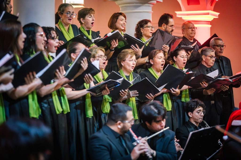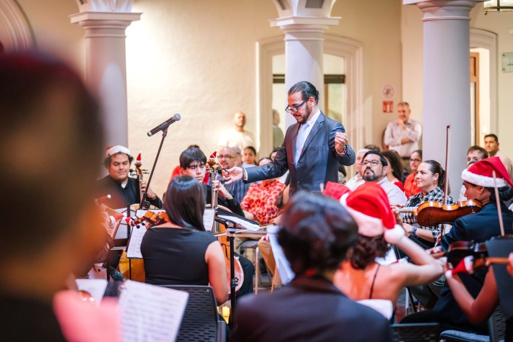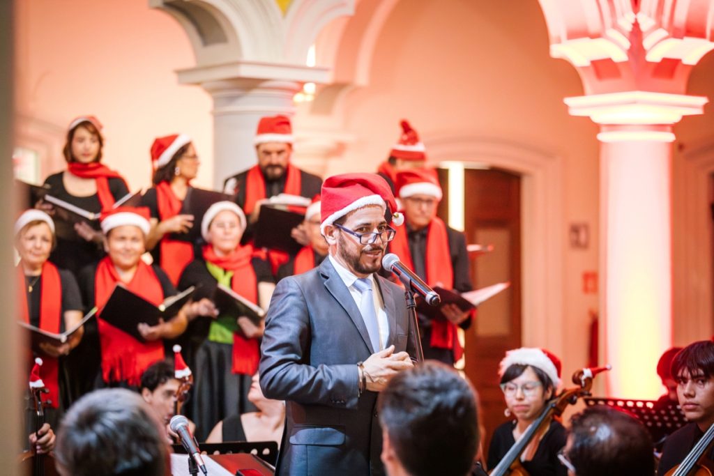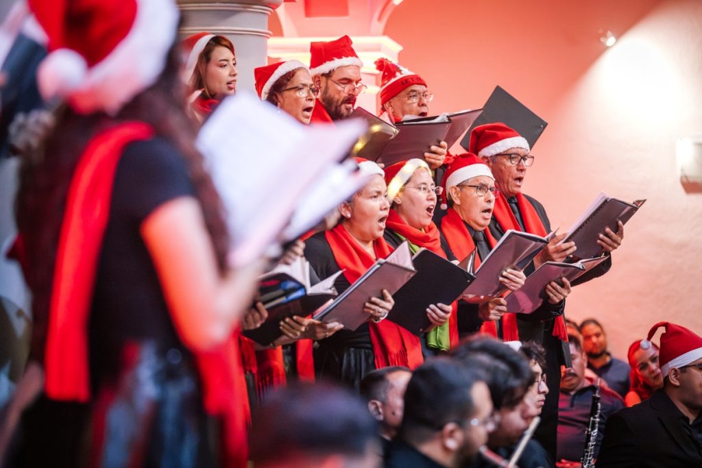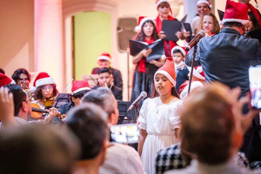Para cerrar las actividades artísticas universitarias de este 2025, se llevó a cabo en la Pinacoteca Universitaria, el concierto “A Christmas Festival”, donde la Orquesta Sinfónica y el Coro de la Universidad de Colima, bajo la dirección del maestro José Antonio Frausto Zamora, ofrecieron un programa con temas de compositores como Wolfgang Amadeus Mozart, George Frederic Haendel, John Williams y Agustín Lara, en un acto que contó con la presencia del Rector de nuestra Máxima Casa de Estudios, Christian Jorge Torres Ortiz Zermeño.