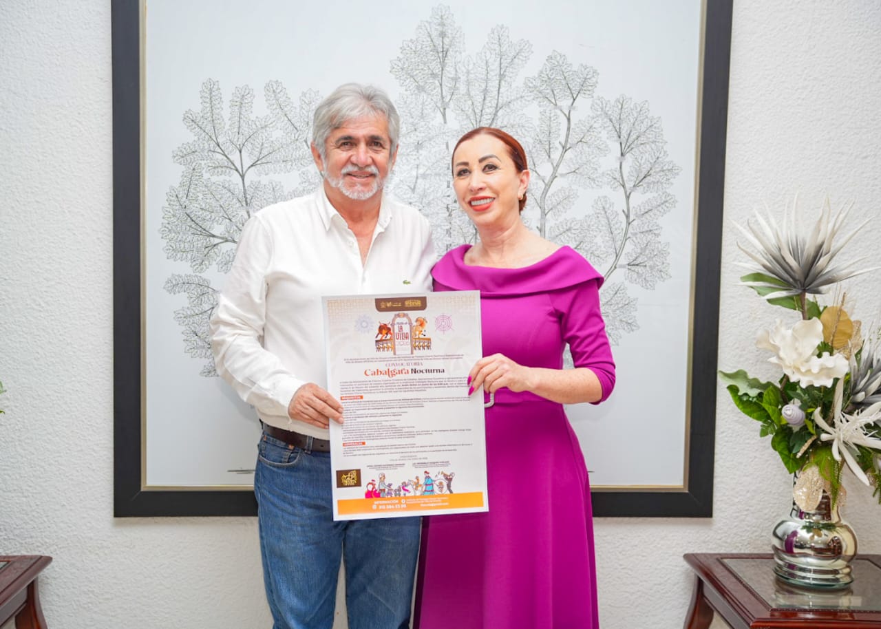La alcaldesa Esther Gutiérrez Andrade y el director del Instituto de Festejos Charro Taurinos y Exposiciones de Villa de Álvarez (IFCEVA), Petronilo Vázquez Vuelvas, dieron a conocer la convocatoria de la Cabalgata Nocturna, la cual se realizará el viernes 6 de febrero a partir de las 8 de la noche, la cual partirá del jardín Núñez en el municipio de Colima.