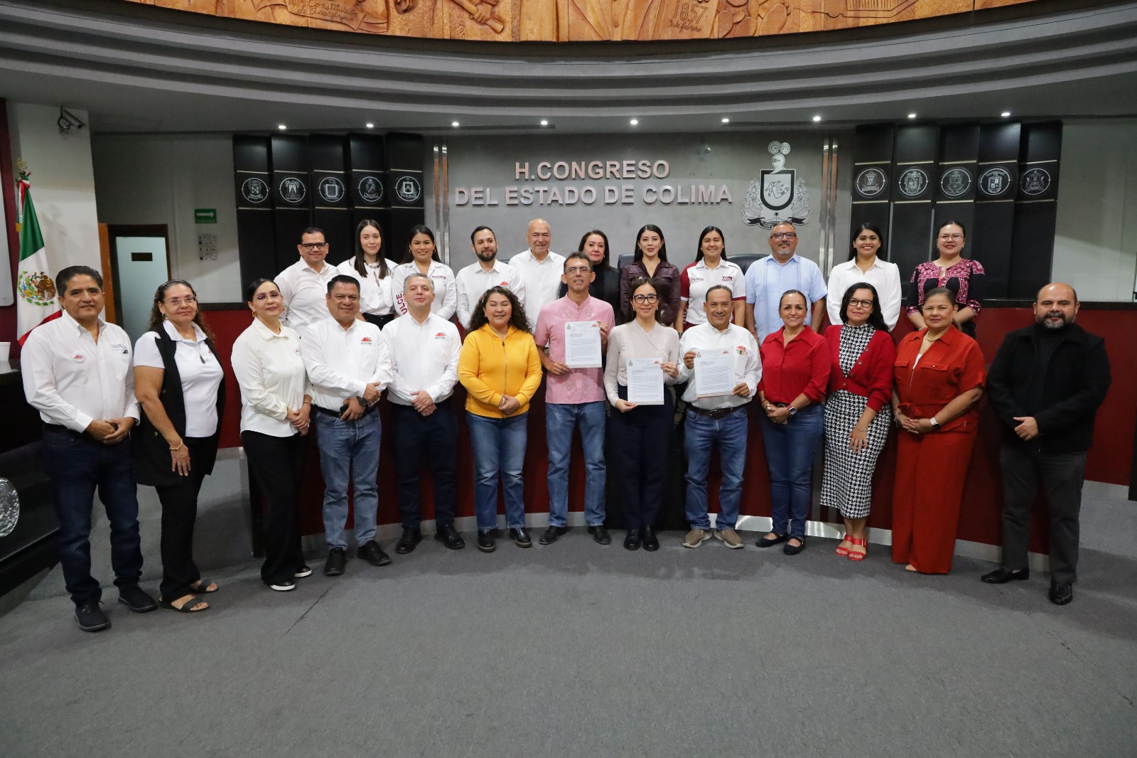 Diputadas y diputados integrantes de la LXI Legislatura de Colima, recibieron el pliego petitorio de incremento salarial y prestaciones 2026, para trabajadoras y trabajadores del Poder Legislativo, adheridos al Sindicato de Trabajadores al Servicio del Gobierno del Estado de Colima (STSGE).