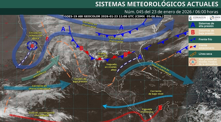 Aunque este viernes 23 de enero se prevé la formación de la tercera tormenta invernal de la temporada en el noroeste y norte de México -derivada de la interacción de una circulación ciclónica en altura, el frente frío número 31, un río atmosférico y las corrientes en chorro polar y subtropical-, Colima no resentirá sus efectos directos y mantendrá condiciones mayormente estables, con ambiente caluroso durante la tarde.