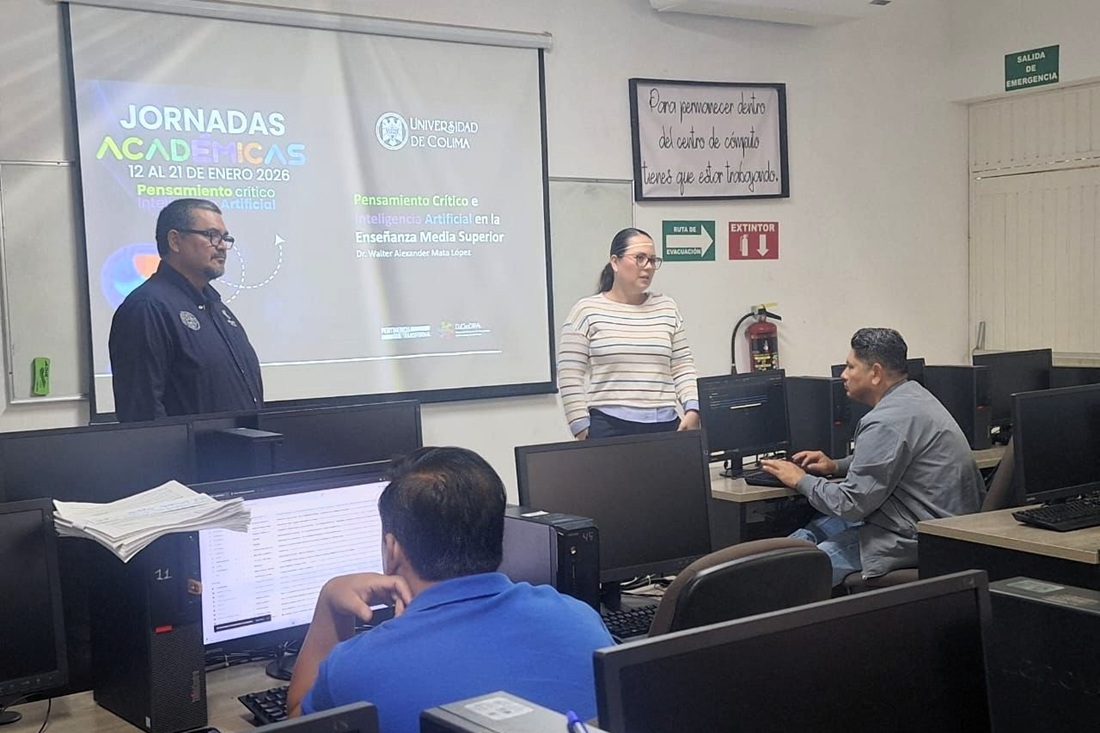 Profesores y profesoras del Bachillerato 30 de la Universidad de Colima (UdeC) manifestaron su interés por profundizar en el uso de herramientas de inteligencia artificial (IA) aplicadas a la enseñanza, tras participar en el taller “Pensamiento crítico e inteligencia artificial en la enseñanza de nivel medio superior”, realizado en el marco de las Jornadas Académicas 2026.