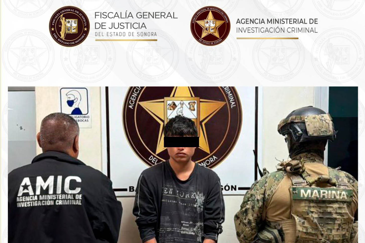 En su cuenta de Facebook, la Fiscalía General de Justicia del Estado de Sonora (FGJES) informó que el detenido fue identificado como Jesús Iván “N”, alias El Chino Arce, señalado como jefe de célula criminal generadora de violencia en la región y quien era buscado mediante ficha activa con recompensa vigente.