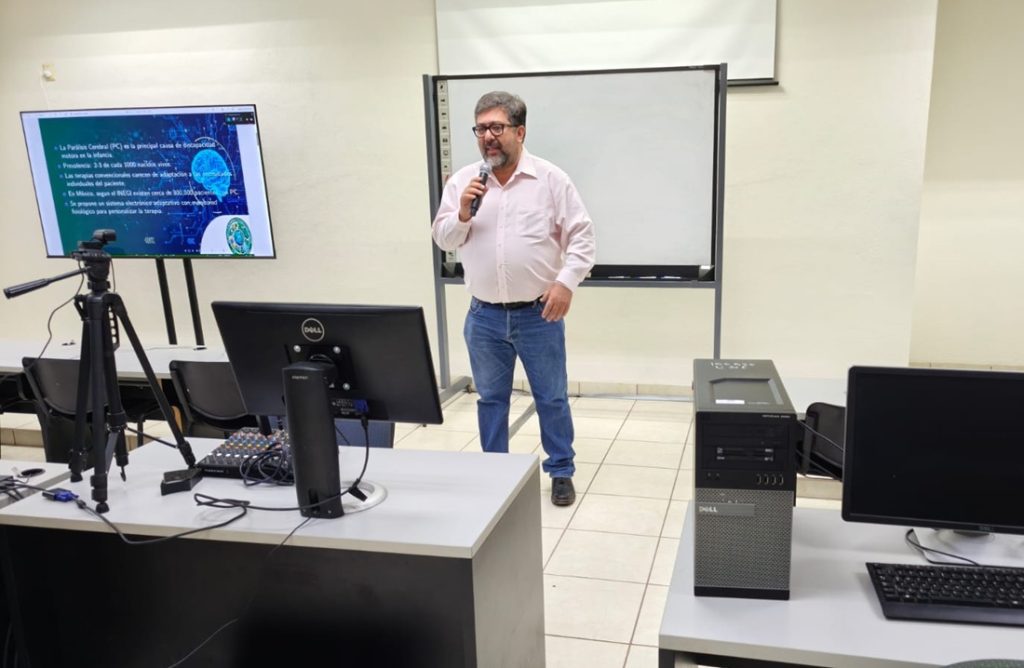 La jornada contó con la participación del profesor-investigador de la Universidad Autónoma de San Luis Potosí, Jorge Simón Rodríguez, quien presentó “Sistemas y sensores de radiofrecuencia”.