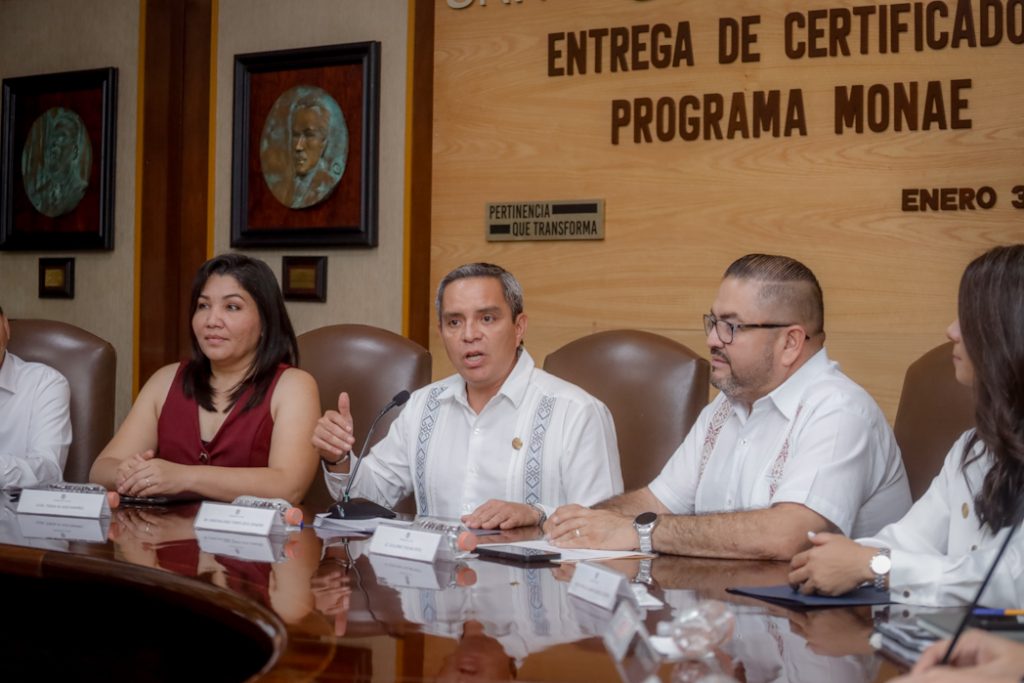 En un evento celebrado en la Sala de Juntas de Rectoría, 17 trabajadores de la Universidad de Colima recibieron su certificado de educación básica (14 de secundaria, 2 de primaria y una constancia de alfabetización) gracias al proyecto Movimiento Nacional por la Alfabetización y la Educación (Monaes), en el que además estudiantes de bachillerato de nuestra Máxima Casa de Estudios fungen como tutores.