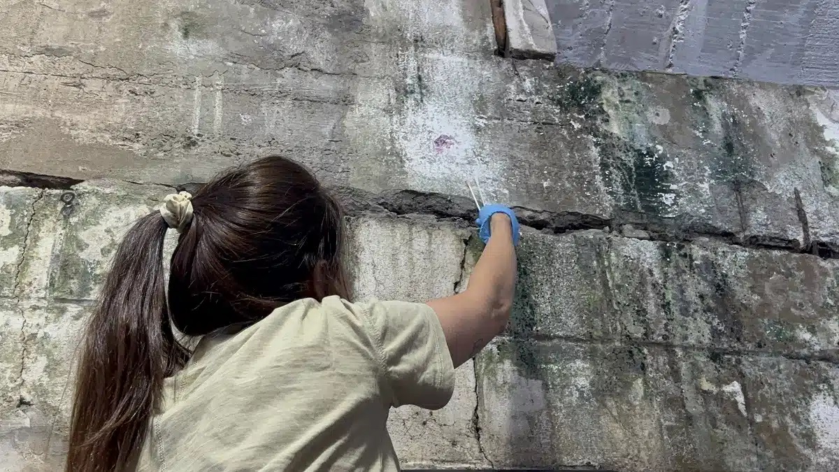 “Todo eso lo llevamos al laboratorio donde identificamos cuáles son estas bacterias a partir de secuenciar su genoma y, de esa forma, podemos saber cuál es su identidad y ver si tienen el potencial de reparar hormigón”, explica Megrian.