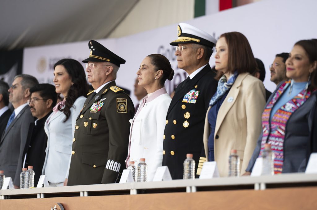 El secretario de la Defensa Nacional, General Ricardo Trevilla Trejo, reiteró que las Fuerzas Armadas son siempre leales y seguirán caminando junto a la presidenta, respaldando a las instituciones de la República y acompañando al pueblo de México.