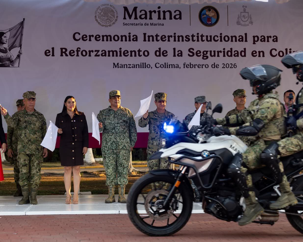 En un mensaje difundido en sus redes sociales, la mandataria estatal informó que, previo a la sesión de la Mesa de Coordinación Estatal para la Construcción de Paz y Seguridad, participó en la Ceremonia Interinstitucional para el Reforzamiento de la Seguridad en Colima, realizada en la 6ª Zona Naval.