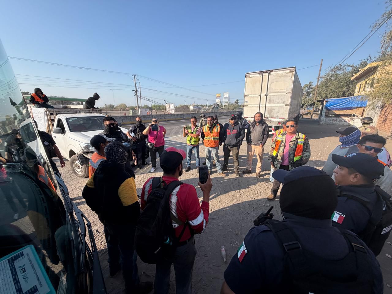 Aproximadamente 20 minutos después de iniciado el bloqueo, arribó al sitio un numeroso contingente de elementos de la Policía Estatal. Los uniformados retiraron las lonas y las unidades que obstruían la vía y, tras dialogar con los trabajadores por algunos minutos, lograron que se retiraran y liberaran completamente la carretera.
