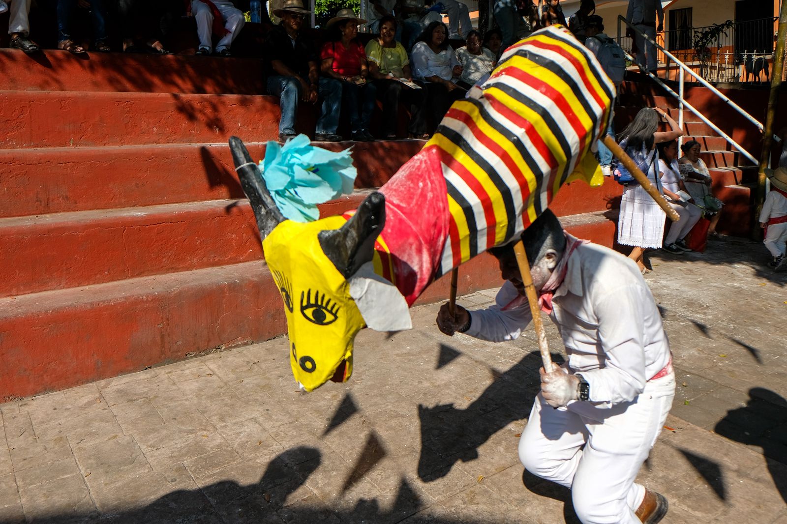 El momento más esperado llega con “la jugada”. En esa dinámica lúdica y ritual, los paspaques persiguen un torito de cartón que recorre las calles del pueblo. El torito simboliza la fertilidad, la abundancia y la renovación de los ciclos. La escena combina risas infantiles, música tradicional y polvo de pinole que se eleva en el aire.