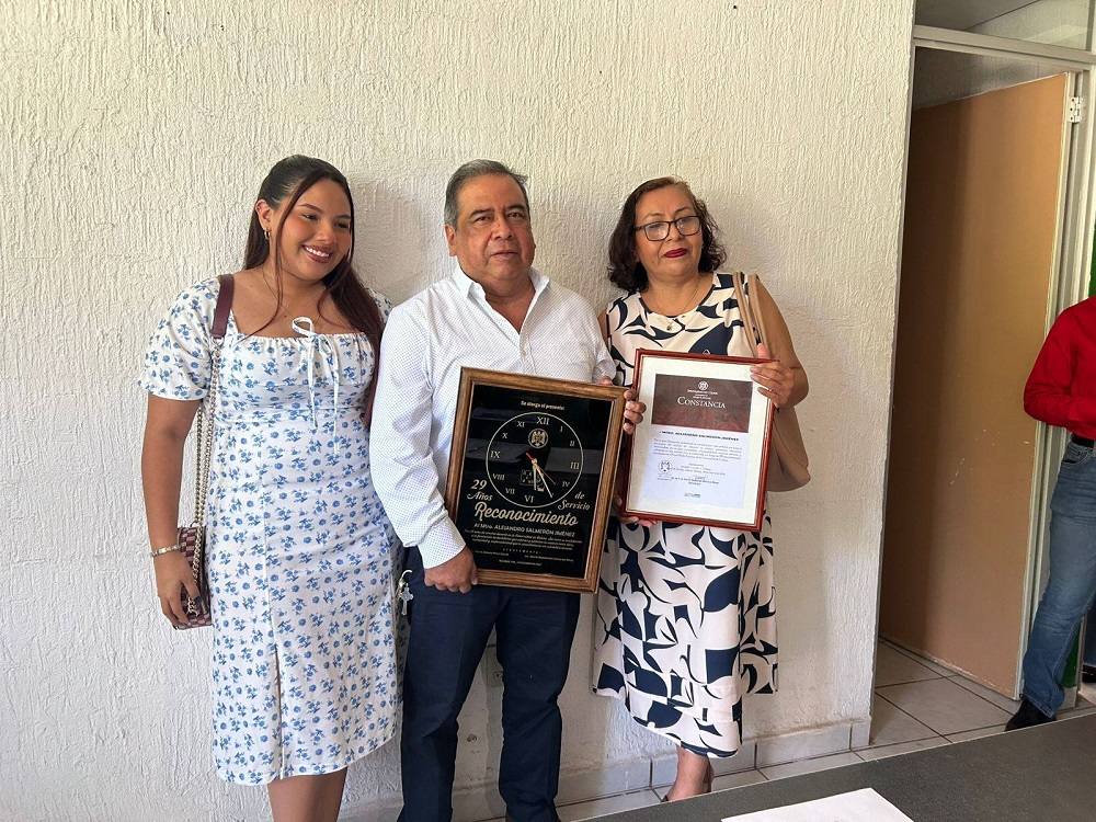 Tras décadas de trabajo en áreas administrativas y académicas, respectivamente, María Esperanza Domínguez Carrillo y Alejandro Salmerón Jiménez finalizaron su ciclo laboral en la Delegación Tecomán de la Universidad de Colima. En este campus, con su trabajo, contribuyeron de manera significativa al desarrollo institucional y a la formación de generaciones de estudiantes.