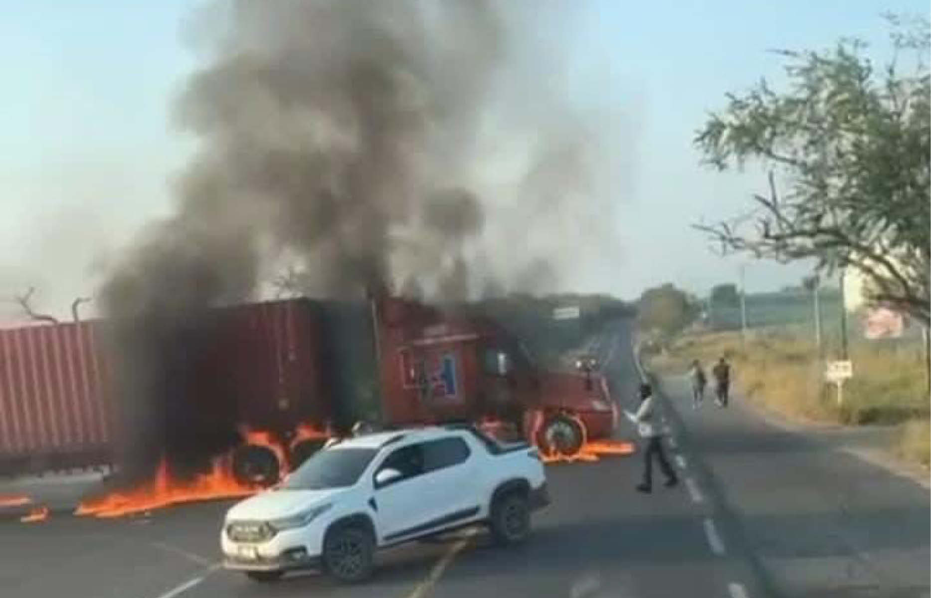 De acuerdo con los primeros reportes, uno de los hechos ocurrió a la altura de la colonia Sagrado Corazón, donde un tráiler y una camioneta fueron atravesados e incendiados, impidiendo la circulación.