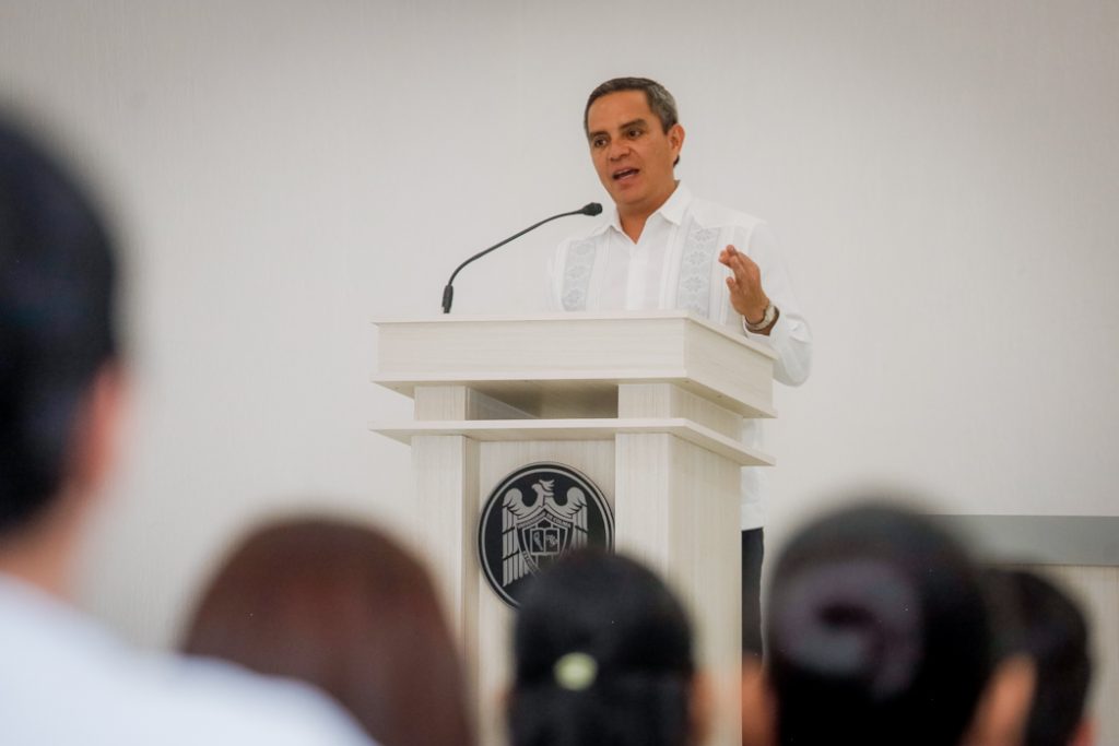 Christian Torres Ortiz resaltó que la Universidad de Colima no forma para que sus egresados y egresadas trabajen solo en Colima: “Eso sería un absurdo del tamaño del Mundo; si ustedes ven las carreras que tenemos, los vocacionamientos, no formamos para que terminen trabajando en Colima. Qué bueno que algunos lo puedan hacer, pero cuando no sea así, tienen que dar ese paso. El egreso es una etapa más dura que la que acaban de resolver, pues pierden la condición de estudiante para convertirse en licenciados y enfrentar una serie de retos y desafíos que son mucho más difíciles”.