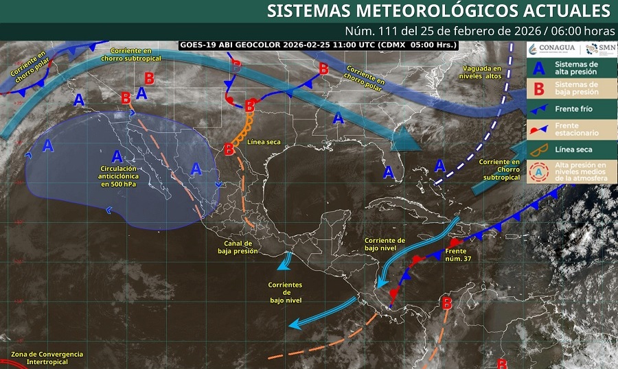 El organismo informó que una circulación anticiclónica en niveles medios y altos de la atmósfera prevalecerá sobre el occidente del país, lo que favorecerá condiciones de tiempo estable y elevadas temperaturas en la entidad. No obstante, el ingreso de humedad del océano Pacífico generará cielo medio nublado y la probabilidad de lluvias aisladas, con acumulaciones de 0.1 a 5 milímetros.