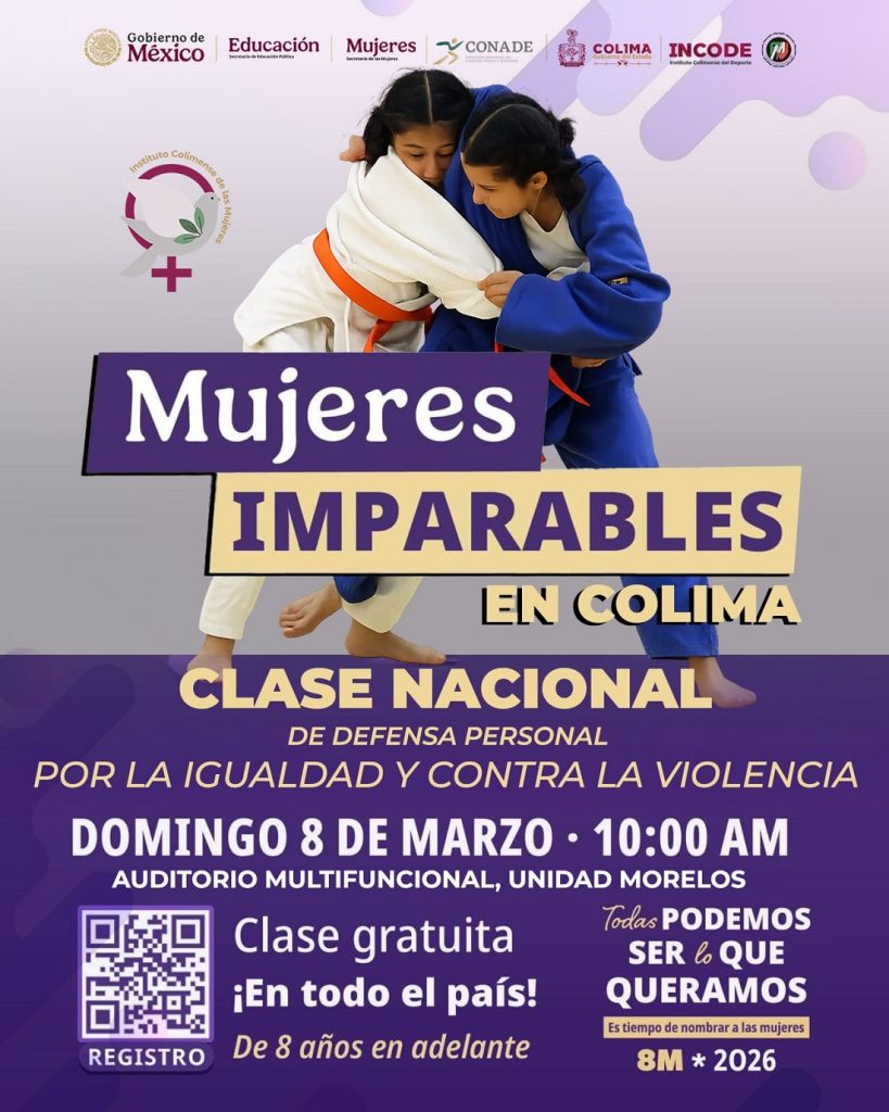 El Instituto Colimense del Deporte convocó a la clase nacional de defensa personal por la igualdad y contra la violencia Mujeres Imparables, que se realizará el 8 de marzo a las 10 de la mañana en el auditorio multifuncional de la Unidad Deportiva José María Morelos y Pavón, en Colima.