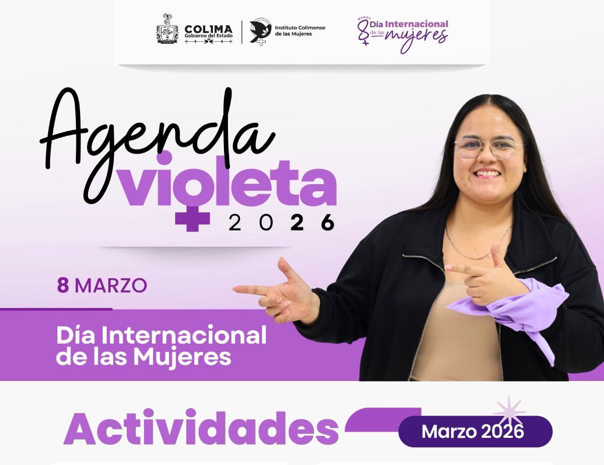 El Instituto Colimense de las Mujeres (ICM) presentó la Agenda Violeta 2026, un programa de actividades que se desarrollará del 2 al 24 de marzo en distintos municipios del estado, en el marco de la conmemoración del 8 de marzo, Día Internacional de las Mujeres.