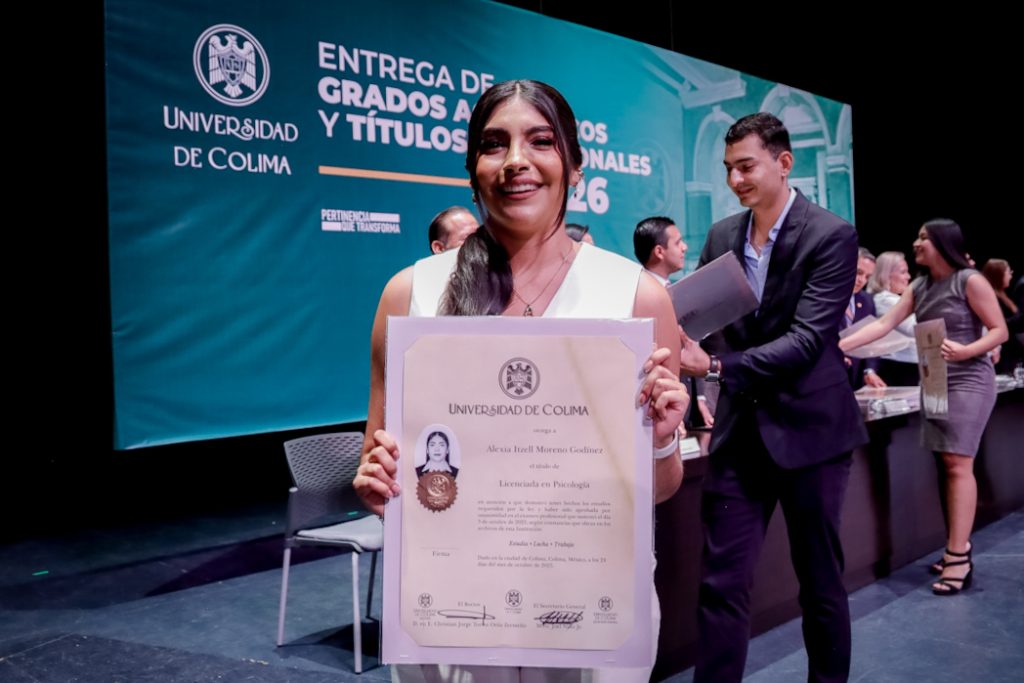 En un acto de rendición de cuentas, la Universidad de Colima entregó 246 títulos y grados académicos en una emotiva ceremonia realizada en el Teatro Universitario “Coronel Pedro Torres Ortiz”. El acto fue presidido por el Rector Christian Jorge Torres Ortiz Zermeño y atestiguado por los familiares y amigos de las y los titulados.