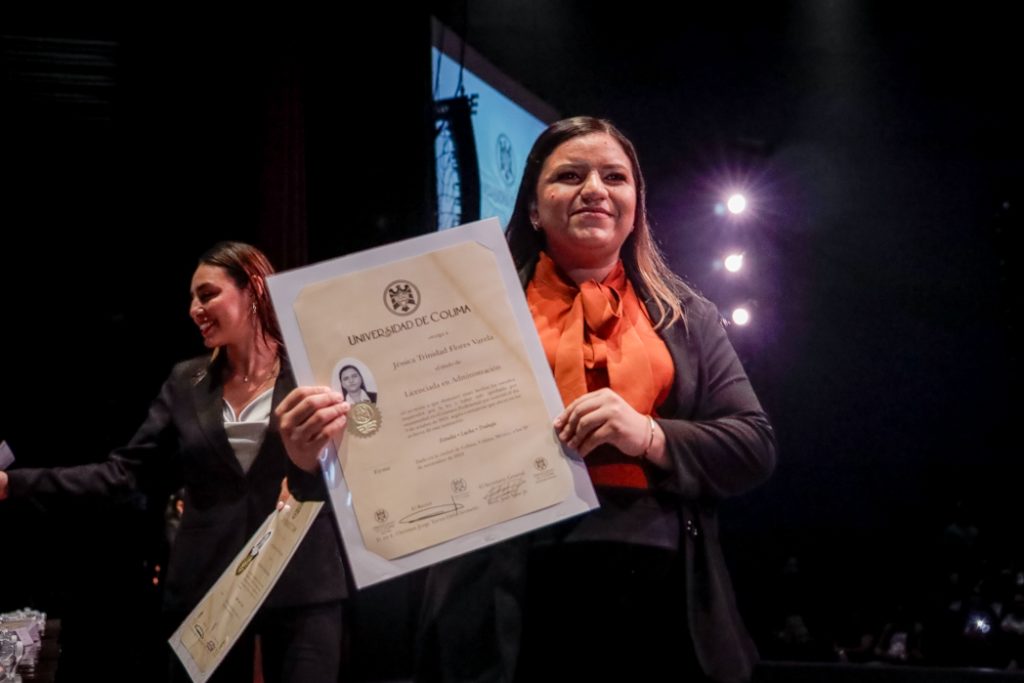 Tras agradecer a sus padres, hijos y esposo, resaltó que la Universidad de Colima es una institución que les ha brindado no solo conocimientos técnicos, sino también “herramientas para enfrentar incertidumbres, para ser disciplinados y continuar, aun cuando las circunstancias se complican. Nos recordó que la constancia es una forma de talento, pero, sobre todo, nos hizo saber que antes que formar profesionistas, la Universidad forma personas preparadas y conscientes de que su profesión es una forma de vivir y de servir”.