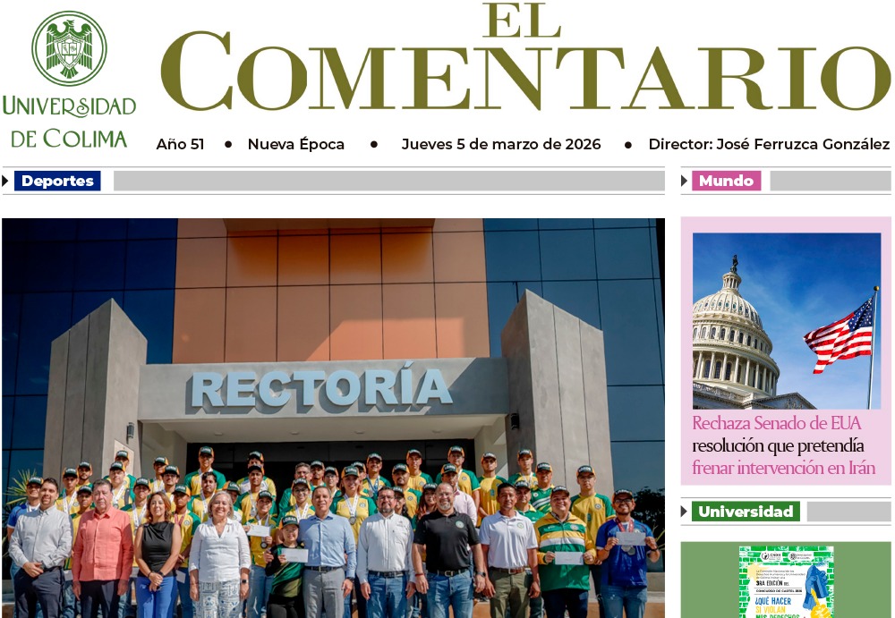 Autor Redacción Ver todas las entradas Comparte esto: Haz clic para compartir en Facebook (Se abre en una ventana nueva) Facebook Haz clic para compartir en X (Se abre en una ventana nueva) X Me gusta esto:Me gusta Cargando... Relacionado Navegación de entradas Edición del miércoles – 4 de marzo 2026 – El Comentario Versión Issuu Edición del viernes – 6 de marzo 2026 – El Comentario Versión Issuu