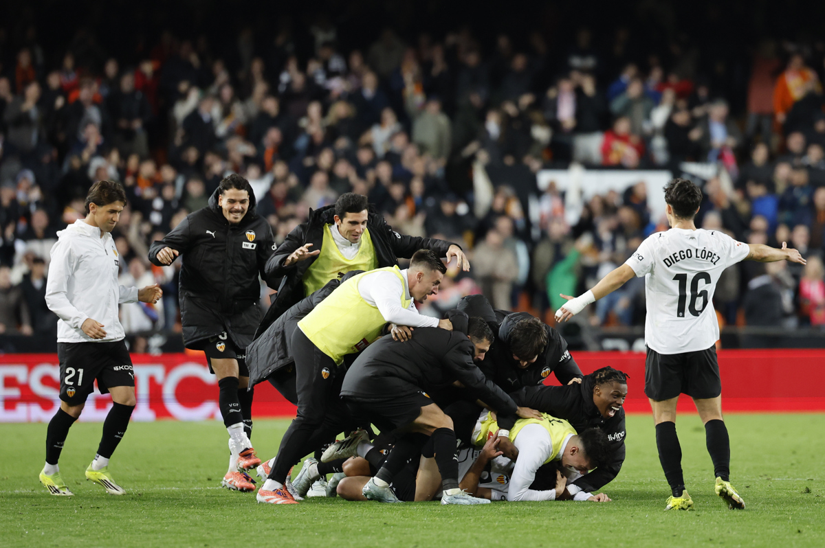 El Valencia remontó 3-2 al Alavés en Mestalla con un penal convertido por Hugo Duro en el minuto 99, resultado que le permitió alejarse de la zona de descenso y frustrar el debut de Quique Sánchez Flores como técnico del conjunto visitante.