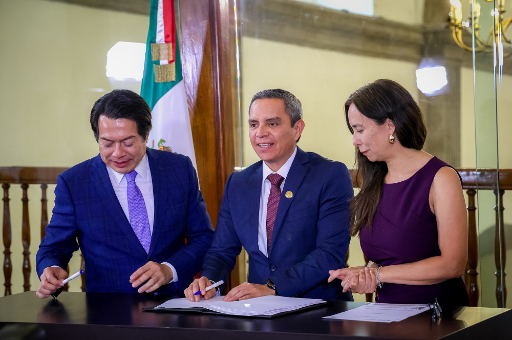 Durante la firma de esta incorporación, a través de un convenio específico como aval académico, el Rector estuvo acompañado por Mario Delgado y por Tania Rodríguez Mora, subsecretaria de Educación Media Superior de la SEP.