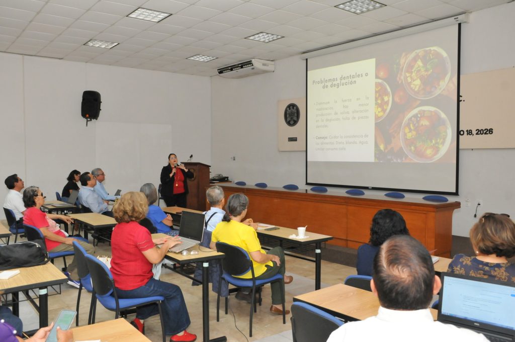 Con el objetivo de mejorar su bienestar y calidad de vida, integrantes de la Asociación de Jubilados y Pensionados de la Universidad de Colima participaron en la charla “Cómo alimentarnos mejor en esta etapa de la vida”, impartida por Fátima López, de la Facultad de Medicina. La actividad es impulsada por la Coordinación General de Investigación para acercar el conocimiento científico a la sociedad y fomentar decisiones informadas en la vida diaria.