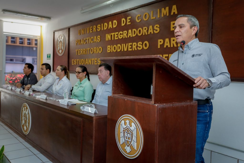 Al dirigir su mensaje, el Rector de la Universidad de Colima, Christian Jorge Torres Ortiz Zermeño, destacó que este programa representa una evidencia clara de la importancia de fortalecer la vinculación entre la Universidad y el sector productivo. “Nos da muchísimo gusto estar en nuestra Delegación de Tecomán, en el Campus del Crucero, un campus muy importante y significativo en la historia de nuestra institución, para el arranque de las Prácticas Integradoras en Territorio Biodiverso”.