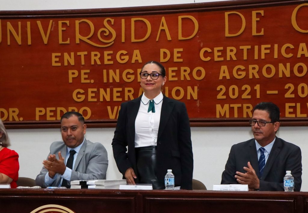 A nombre de la generación, Susana Kibela Carrillo Magaña recordó que su camino universitario estuvo marcado por retos como la pandemia, las clases virtuales, las prácticas en campo bajo el intenso calor de Tecomán y largas jornadas de estudio. Señaló que la carrera les enseñó que “el campo es paciencia, respeto y constancia”, y que “sembrar no garantiza cosechar, pero no sembrar garantiza no obtener nada”.