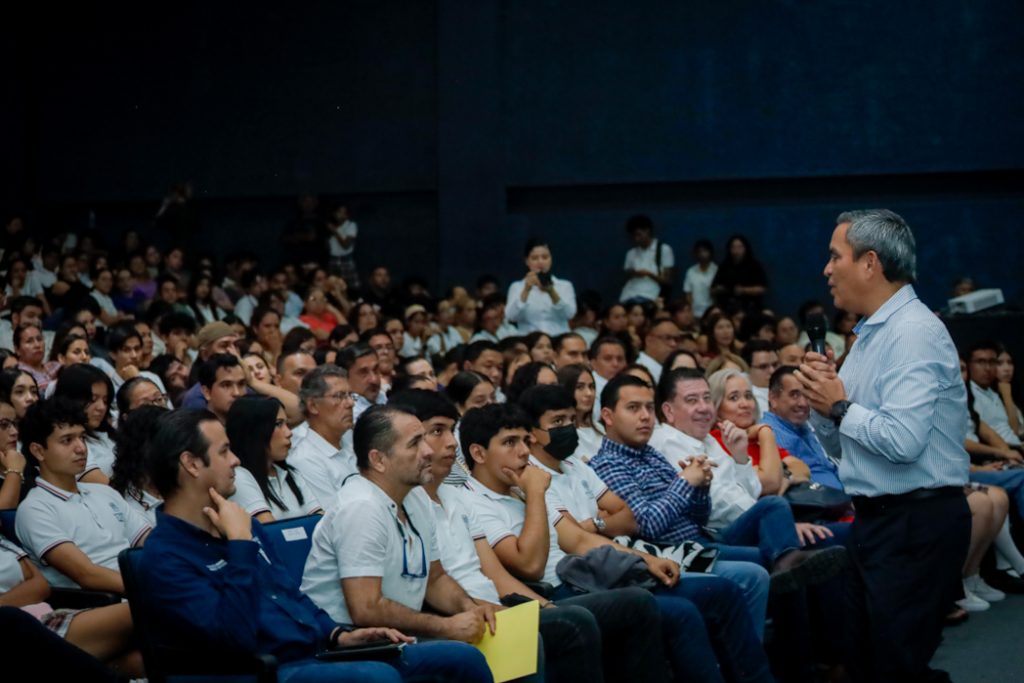 En su intervención, el Rector de la Universidad de Colima celebró la presencia no sólo de estudiantes, sino también de madres y padres de familia, ya que -señaló- su charla aborda reflexiones derivadas de su experiencia en distintos cargos a lo largo de su trayectoria, las cuales pueden ser útiles para cualquier persona.