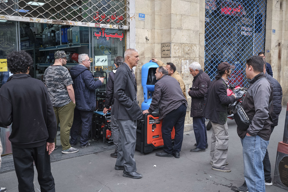 Muchos iraníes forman colas ante las tiendas de Teherán especializadas en la venta de generadores eléctricos, un sector que vive ventas récord tras las amenazas del presidente de Estados Unidos, Donald Trump, de bombardear las centrales eléctricas si Irán no abría el estrecho de Ormuz.