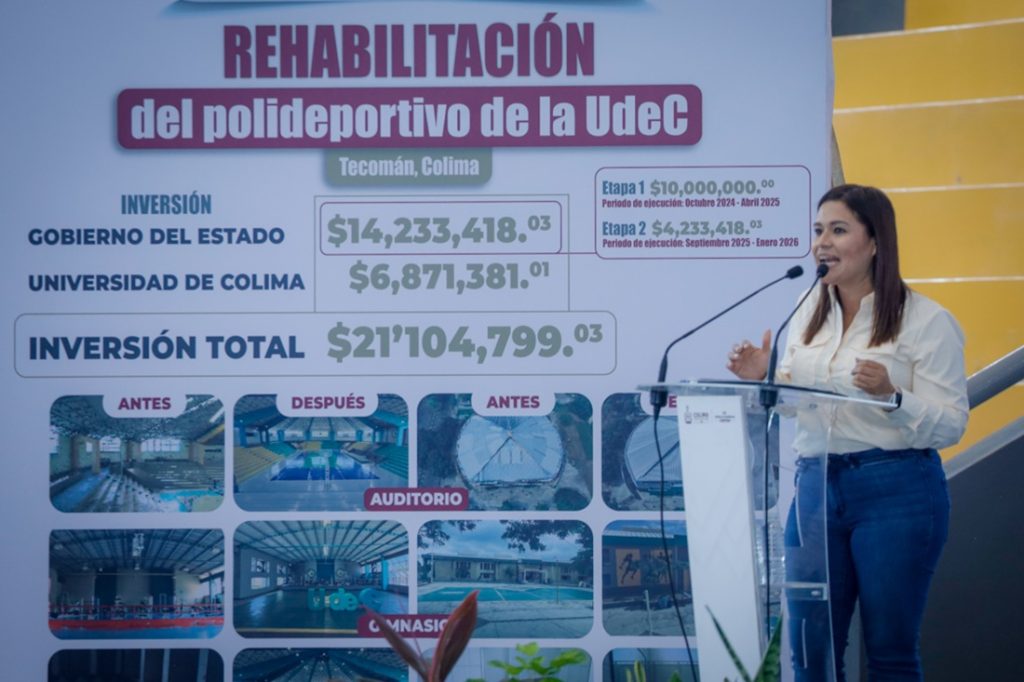 Precisó que el Gobierno del estado aportó 14 millones 233 mil 418.03 pesos, provenientes de recursos 100% estatales, mientras que la Universidad de Colima invirtió 6 millones 871 mil 381.01 pesos, para una inversión total de 21 millones 104 mil 799.03 pesos en la rehabilitación del complejo deportivo del Campus Tecomán.
