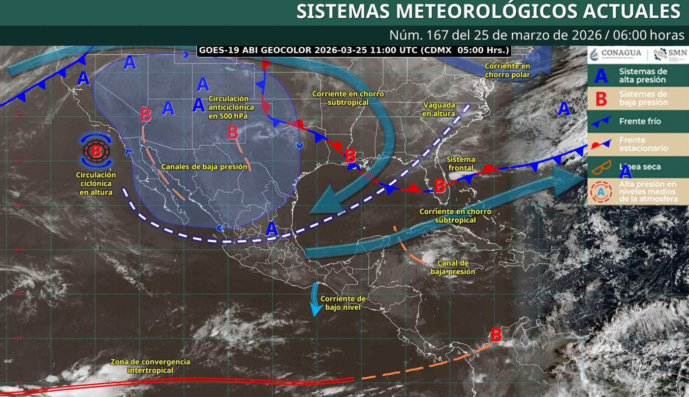 Este miércoles 25 de marzo, Colima registrará intervalos de chubascos acompañados de descargas eléctricas, así como ambiente caluroso durante la tarde, de acuerdo con el pronóstico del Servicio Meteorológico Nacional (SMN). Estas condiciones serán generadas por canales de baja presión, una vaguada en altura y el ingreso de humedad del océano Pacífico, golfo de México y mar Caribe.