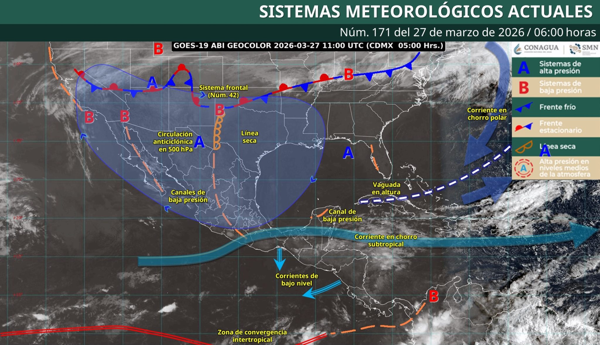 A nivel nacional, el ingreso del frente frío número 42 al norte del país y su masa de aire polar generarán lluvias y vientos fuertes en esa región, aunque sin efectos significativos directos en Colima.
