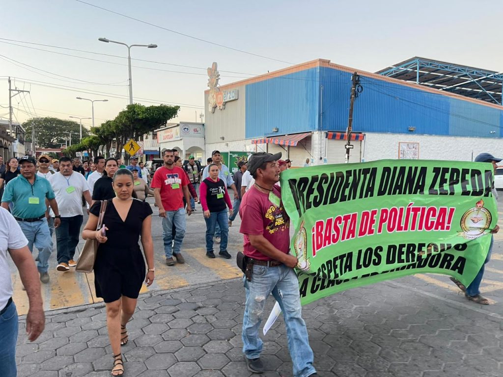 El dirigente del sindicato, Sergio Iván Vizcarra de la Rosa, encabezó la manifestación en la que usaron el mismo templete colocado para la fiesta anual del municipio y colocaron su lona de exigencias, advirtiendo que no se verán afectados los servicios a la población, pero sí se harán presentes en los eventos de la alcaldesa, Diana Zepeda, para exigir que cumpla sus compromisos “y que deje de lado la política para reelegirse, también en redes sociales vamos a hacerle su TikTok, porque sabemos que aquí el que no le da likes o hace comentarios bonitos, lo corren”.