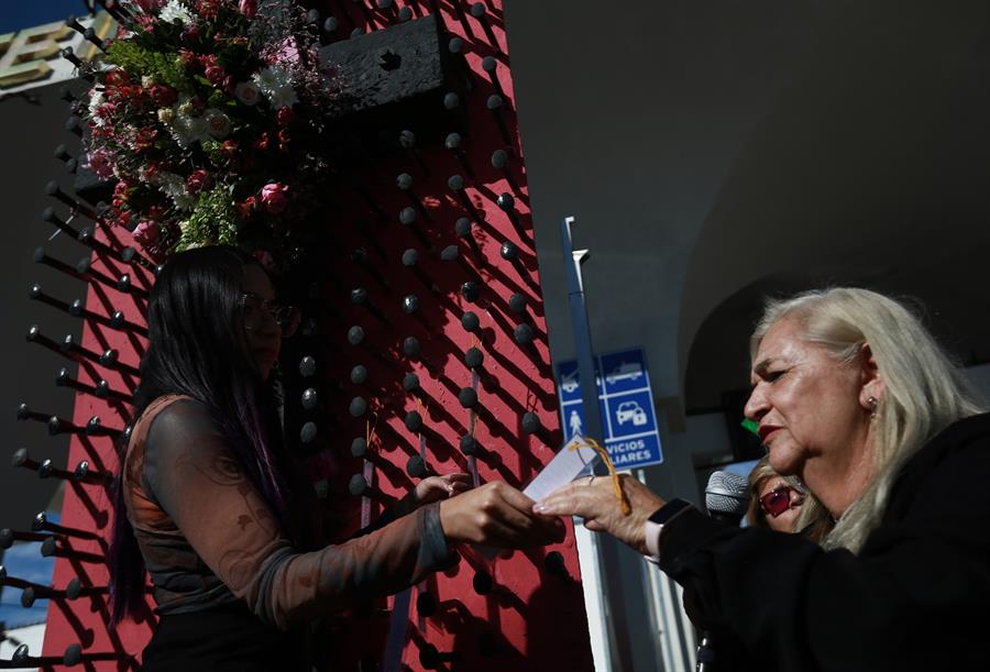 Organizaciones civiles colocaron una ofrenda en la Cruz de Clavos, en Ciudad Juárez, e hicieron un ritual para recordar a todas las mujeres asesinadas y para proteger a las habitantes esta ciudad ubicada entre las más violentas para el género femenino.