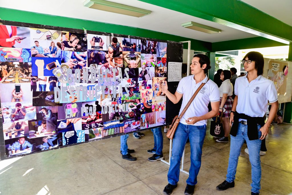 A través de pinturas, esculturas, puestas en escena, videos, podcast, collages y murales, cada equipo presentó un mensaje de prevención y concientización sobre las adicciones que no requieren de sustancias para causar un daño, como es el caso de la adicción a las redes sociales, a las compras, al juego e incluso al deporte en exceso.