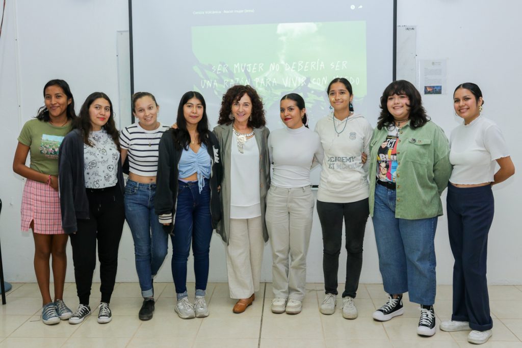 Compartió que, en lo personal, tiene un compromiso con la voz de mujeres, e invitó a las alumnas asistentes a participar en la lectura de uno de sus poemas.