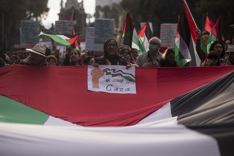 “Le pedimos a López Obrador que rompa relaciones con Israel. El Estado mexicano tiene varias relaciones, sobre todo económicas y militares con el estado de Israel, sin ser tan fuertes como los de Estados Unidos u otros estados, pero sí las hay. Hay que romperlas”, manifestó una joven, representante de los judíos antisionistas y que prefirió el anonimato.