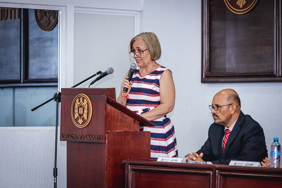 El presídium estuvo integrado por Susana Aurelia Preciado Jiménez, directora general de Educación Superior, en representación del Rector Christian Torres Ortiz Zermeño; Adrián López Virgen, delegado de Villa de Álvarez, y Hugo Barreto Solís, director general de Administración Escolar. Al evento también asistieron invitados especiales, sinodales y padres de familia.