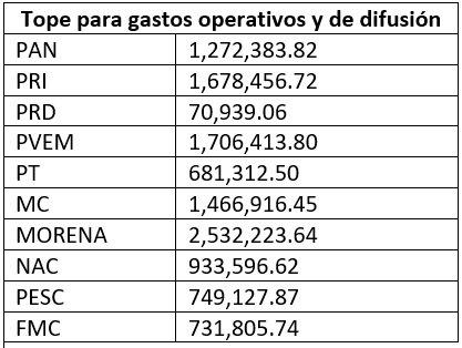 Asimismo, el Consejo General aprobó el tope de gastos operativos y de difusión que podrá realizar cada instituto político de sus procesos internos en el Proceso Electoral Local 2023-2024 con base en el financiamiento público ordinario.