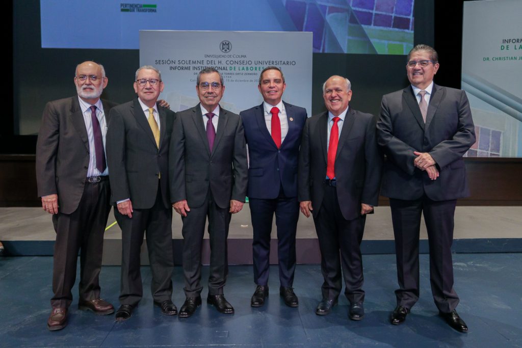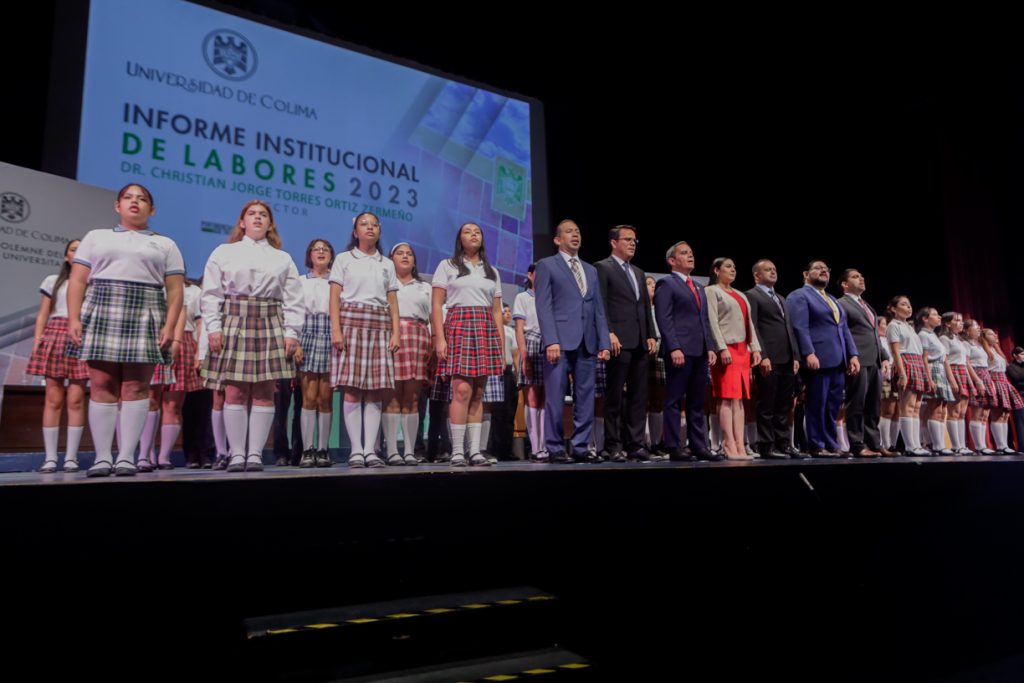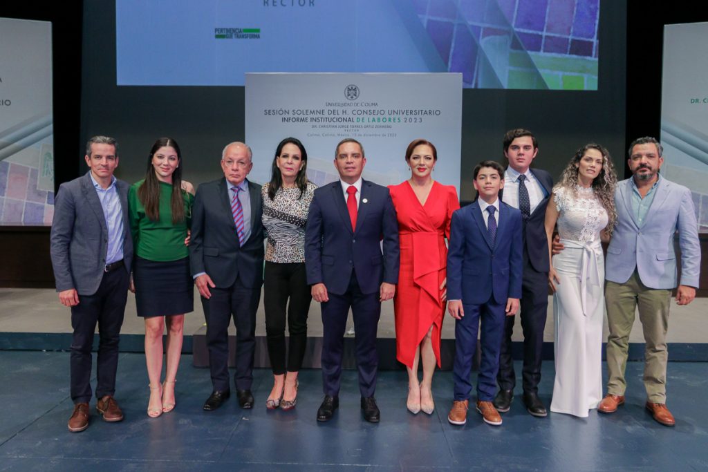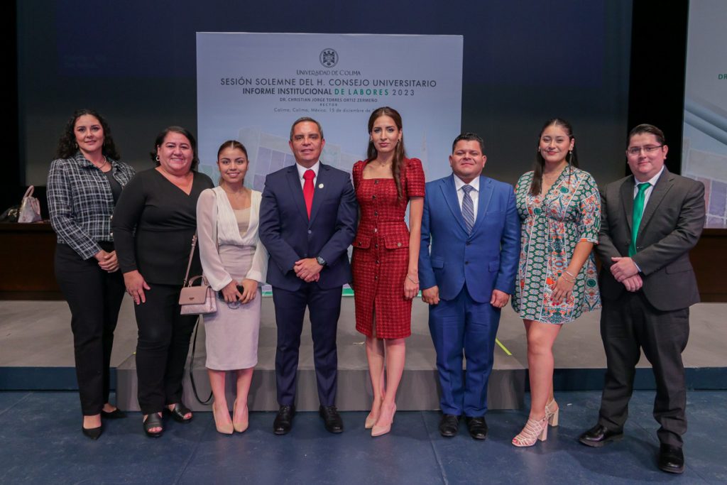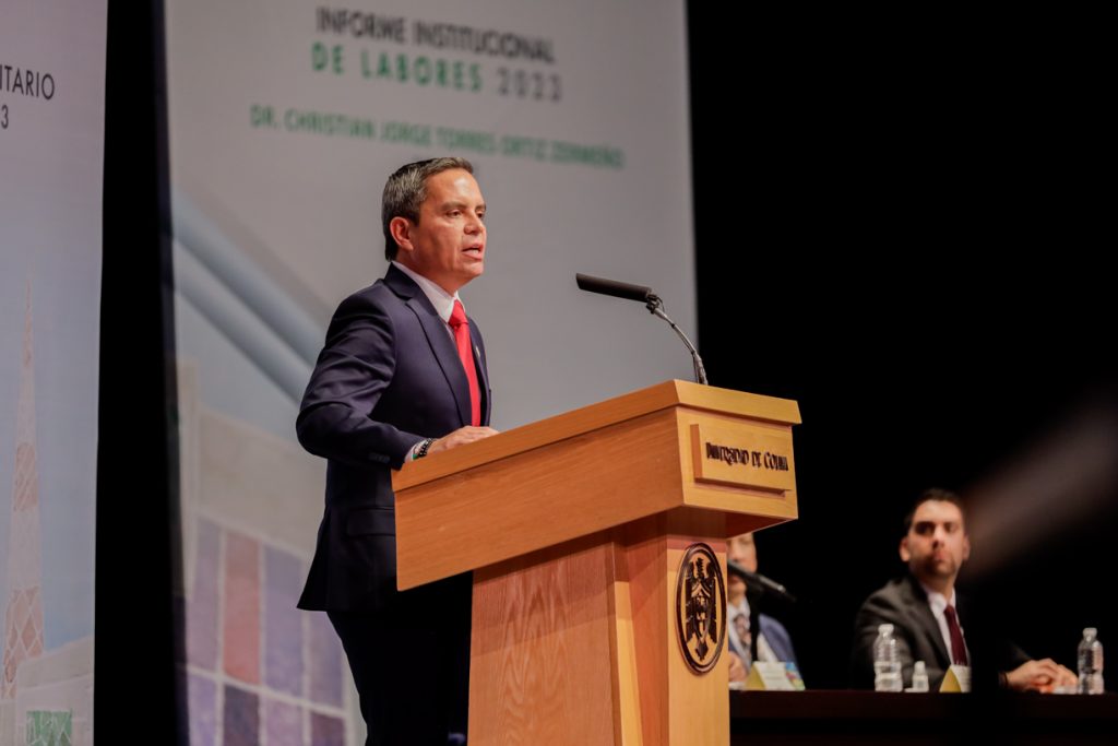 Ante un Teatro Universitario lleno de invitados y concejales integrantes del Consejo Universitario, máximo órgano de Gobierno de la Universidad de Colima, el Rector Christian Jorge Torres Ortiz Zermeño informó a la comunidad universitaria y a la sociedad en general sobre las acciones más importantes realizadas por la institución educativa a lo largo de este 2023.