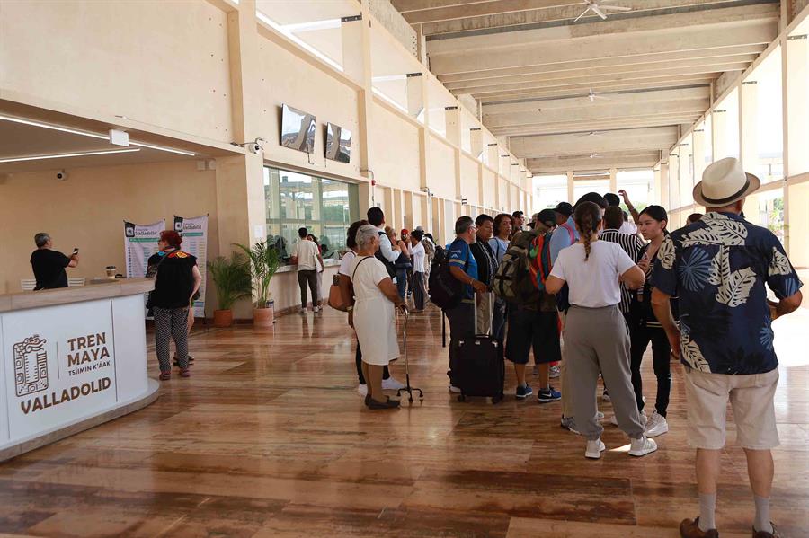En un recorrido por la estación de Valladolid, en el estado de Yucatán, se observa que, aunque no viaja a su máxima capacidad y la velocidad del tren es baja, el flujo de pasajeros es constante y se ha convertido en una atracción para gente local y turistas curiosos.