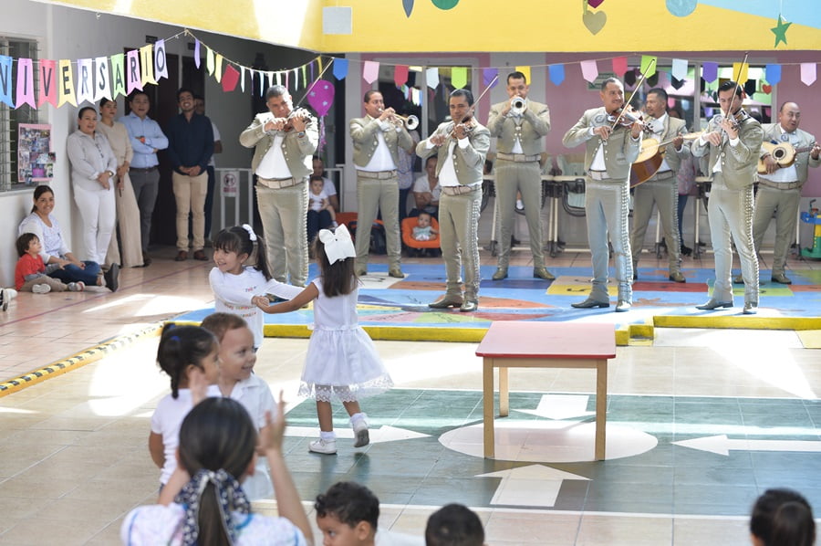 La Estancia Infantil de la Universidad de Colima celebró sus 33 años de servicio con una mañana de alegría y convivencia organizada por el personal que la conforma. El evento estuvo amenizado por el Mariachi de la Universidad de Colima y la participación de los niños y niñas que acuden a este centro de cuidado infantil.