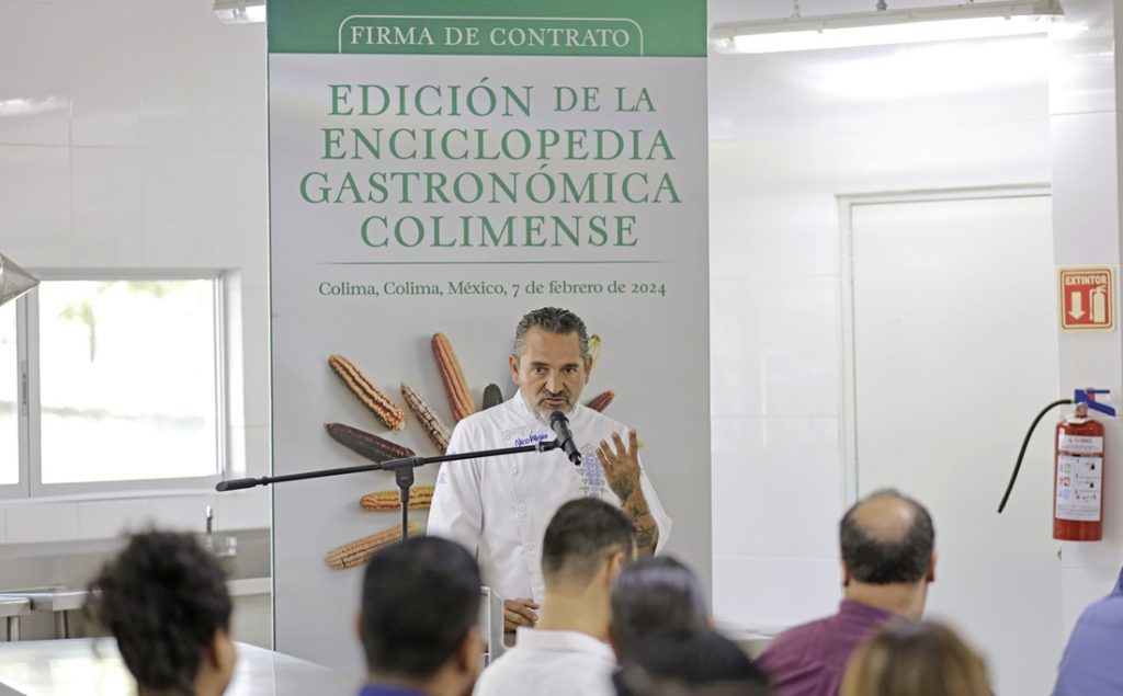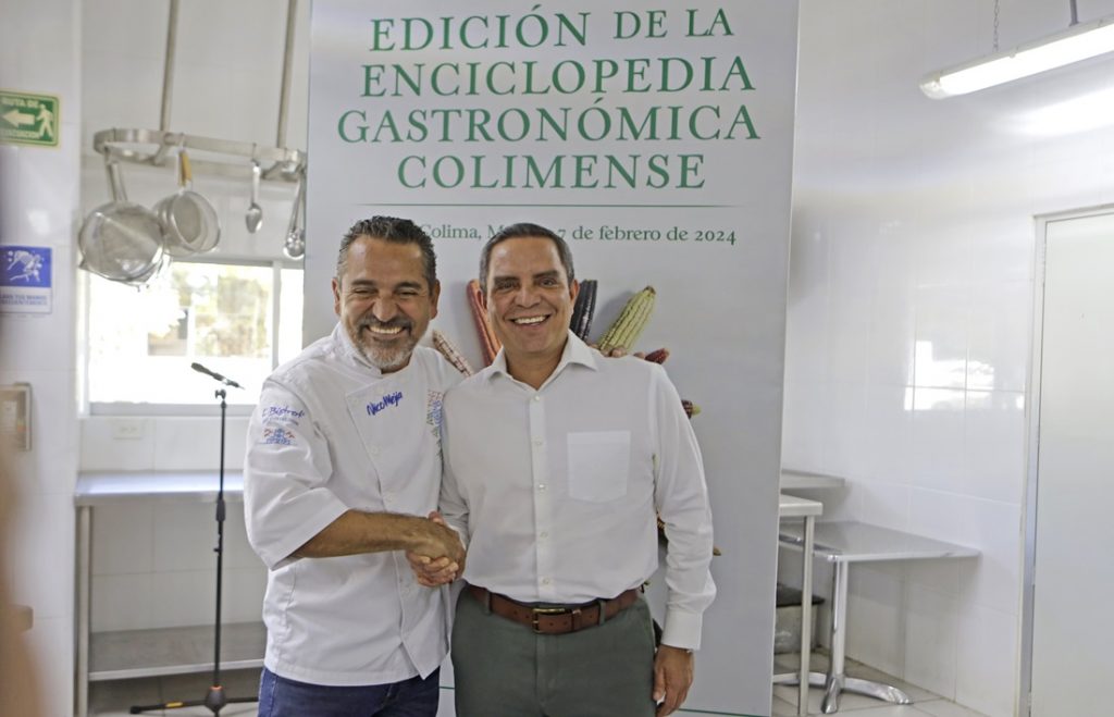 El Rector de la Universidad de Colima (UdeC), Christian Jorge Torres Ortiz Zermeño, y el chef Nico Mejía, firmaron el contrato de coedición digital del primer tomo de la Enciclopedia Gastronómica Colimense. La firma se realizó en el laboratorio de alimentos y bebidas de la Facultad de Turismo de esta Casa de Estudios, ubicada en el Campus Villa de Álvarez.