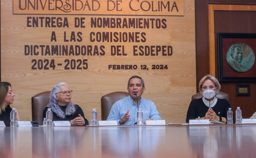 Christian Jorge Torres Ortiz Zermeño, Rector de la Universidad de Colima, entregó nombramientos a quienes conformarán las comisiones dictaminadoras del Programa de Estímulos al Desempeño Docente (ESDEPED), en acto un celebrado en la Sala de Juntas de Rectoría.