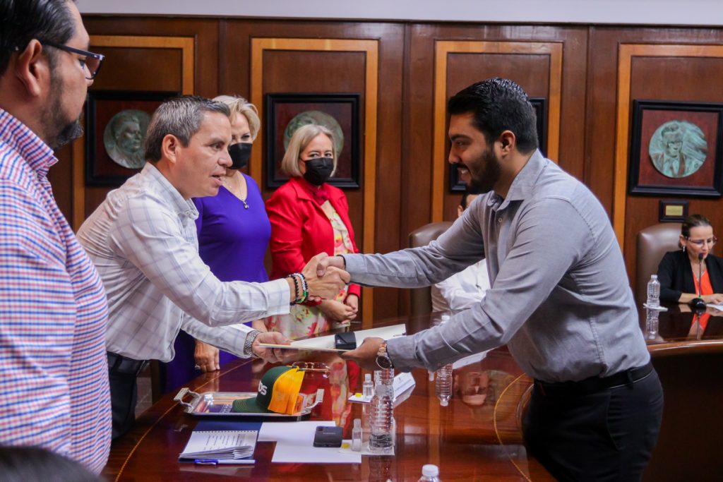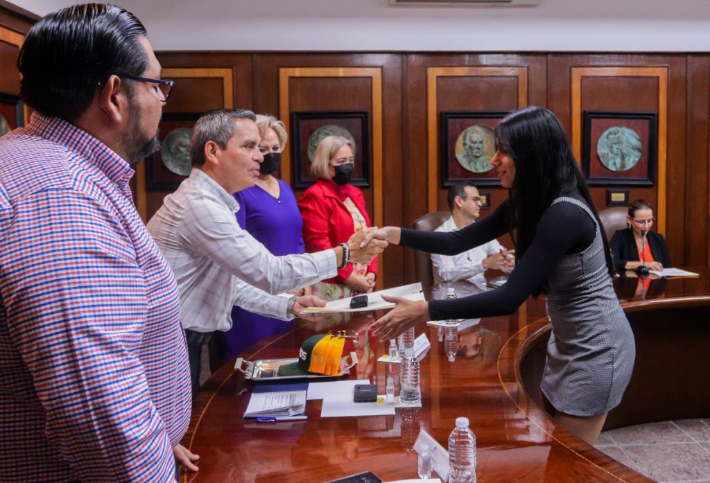 Christian Torres Ortiz Zermeño, Rector de la Universidad de Colima, entregó el premio CENEVAL al desempeño de la excelencia EGEL correspondiente al semestre enero-junio 2023, en la sala de juntas de Rectoría.