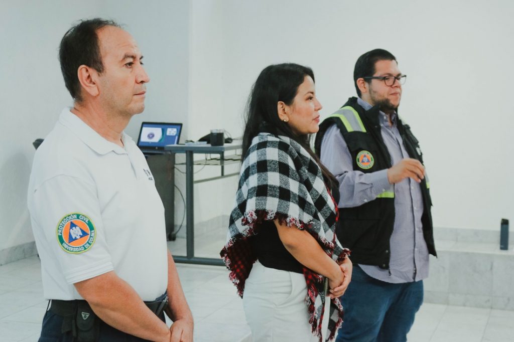 Ana María Gallardo Vázquez, delegada universitaria en Manzanillo; y Marcos Buenrostro, responsable de Protección Civil Universitaria, dieron la bienvenida a los y las participantes. Ambos destacaron la importancia de la preparación ante situaciones de emergencia, haciendo referencia a la experiencia del puerto con temblores y otros eventos.