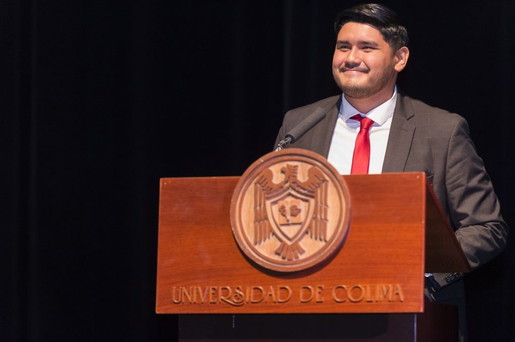 En nombre de las y los titulados, el egresado de la Licenciatura en Publicidad y Relaciones Públicas, Ricardo Daniel Acosta Gahona, en un emotivo mensaje, destacó la perseverancia y el compromiso de las y los allí reunidos, para iniciar y concluir su proceso formativo.